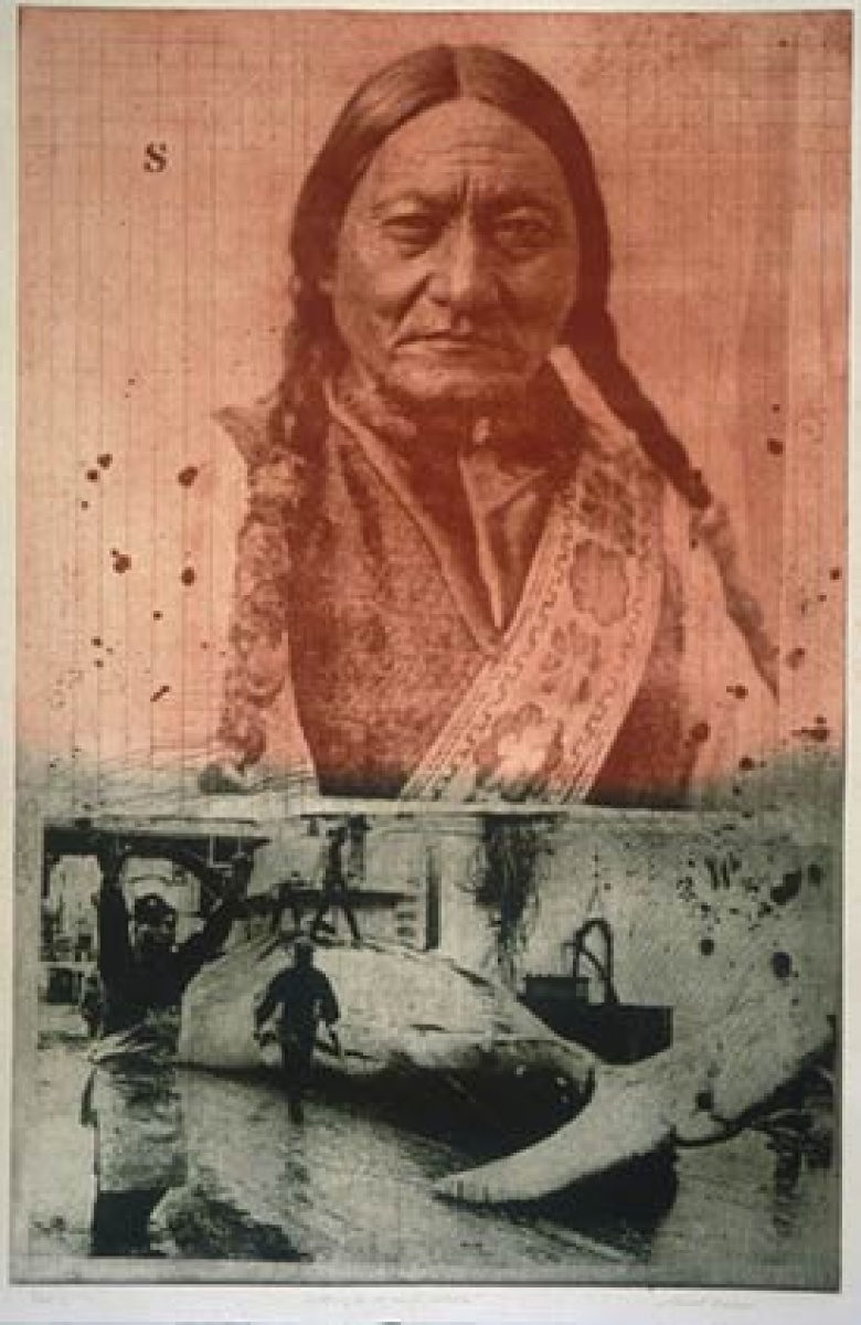 The Columbus Suite, 1990, distills a larger body of work created in advance of the quincentenary of the most celebrated and reviled of European landfalls in the Americas. Its twelve monumental etchings were produced in Beam’s own studio and display bravura technique.